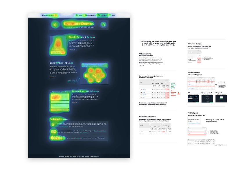 The first job of a designer is always to swim in the context of their product, learn as much as possible about the tool at hand, its goals, as well as the owners and users behind it. I started making heatmaps and analytics report to see beyond what only my eyes can see.