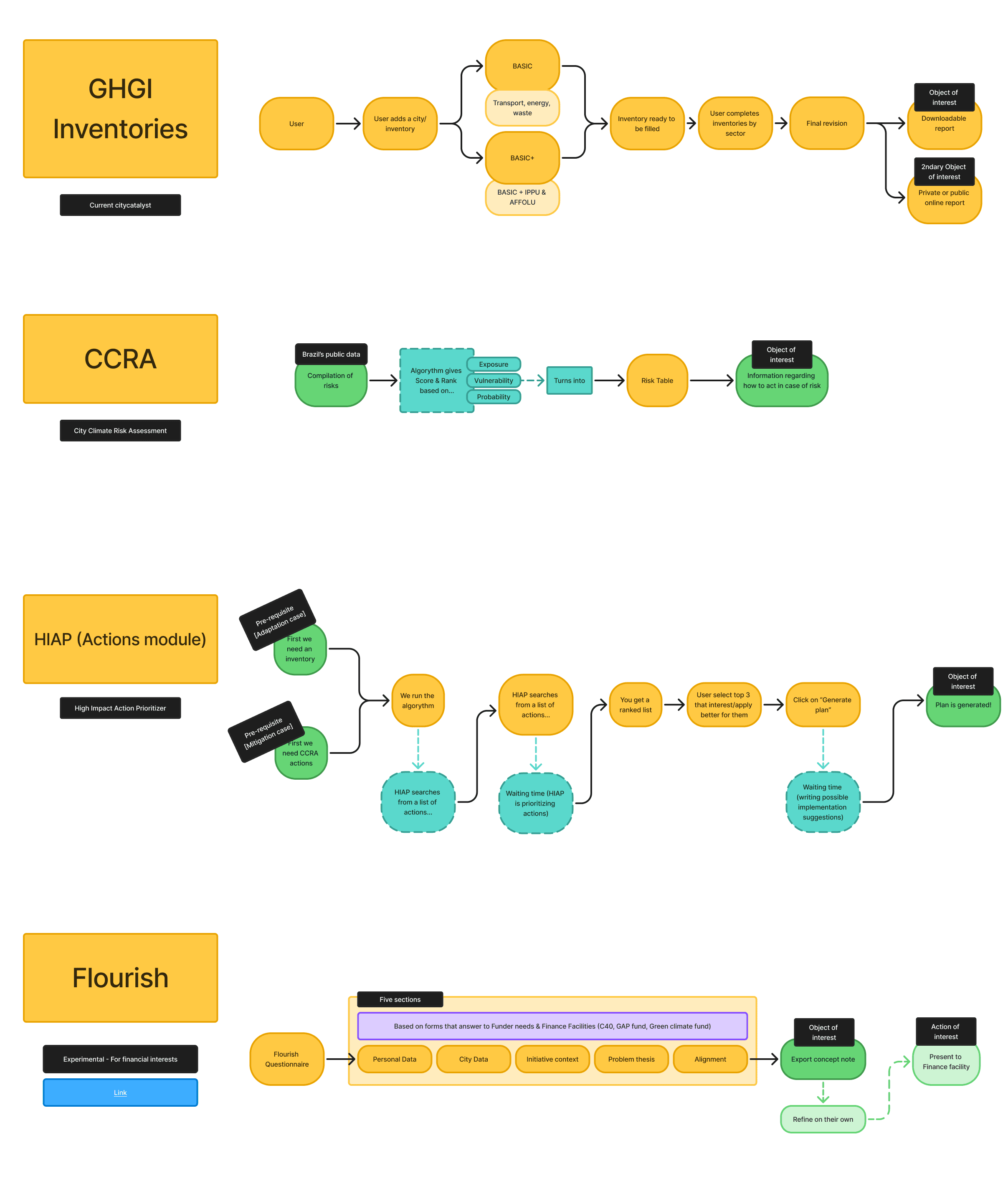 The first thing was to dive deeply into the different tools proposed by the organization; CAP (Climate Action prioritization), CCRA (Climate risk assessment) and GHG Inventories (Co2 measurements). All with their own set of features and outcomes.